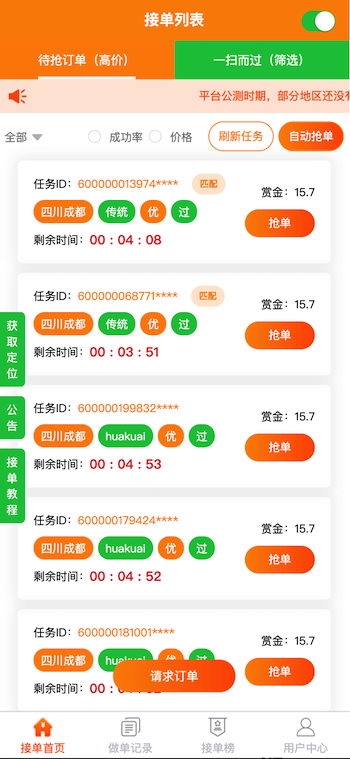 類似“碼幫平臺(tái)/FZ輔助/碼力平臺(tái)/閃電接單/蜻蜓輔助/雛菊輔助”,第三方微信輔助注冊(cè)任務(wù)管理平臺(tái)——“蜜蜂”任務(wù)平臺(tái)管理系統(tǒng),幫助有大量微信注冊(cè)需求的商家和想要0元投入月入過(guò)萬(wàn)的兼職人員搭建連通的橋梁。系統(tǒng)由用戶端H5/APP、商家端H5/APP、地推商戶端H5、商家端PC、平臺(tái)端PC架構(gòu)而成,支持用戶隨時(shí)提現(xiàn),支付寶實(shí)時(shí)到賬,商家端一鍵掃碼下單,方便快捷;系統(tǒng)支撐商家每天10萬(wàn)+的訂單下發(fā)和用戶隨時(shí)隨地?fù)寙危鰡危嵢蚪穑岈F(xiàn)等更多功能。。。